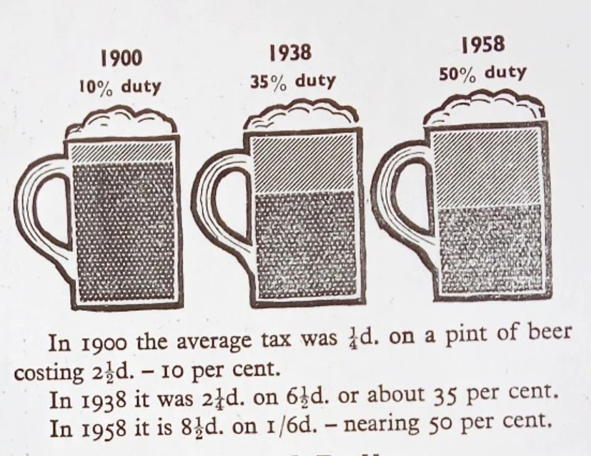 Yikes! We always here about the younger folk laying off the hootch – but even the set that clinks and drinks is clinking a lot less. But when was it ever the way it used to be? 1910 apparently. Nigel Sadler posted some images from The Times ‘Beer in Britain’s Supplement from April 1958, including the fascinating tale of the creation of the Hops Marketing Board as well as this infographic on the increase in duties on beer from 10% in 1910 to 50% in 1958. Winning two World Wars as your empire collapses will do that for you.